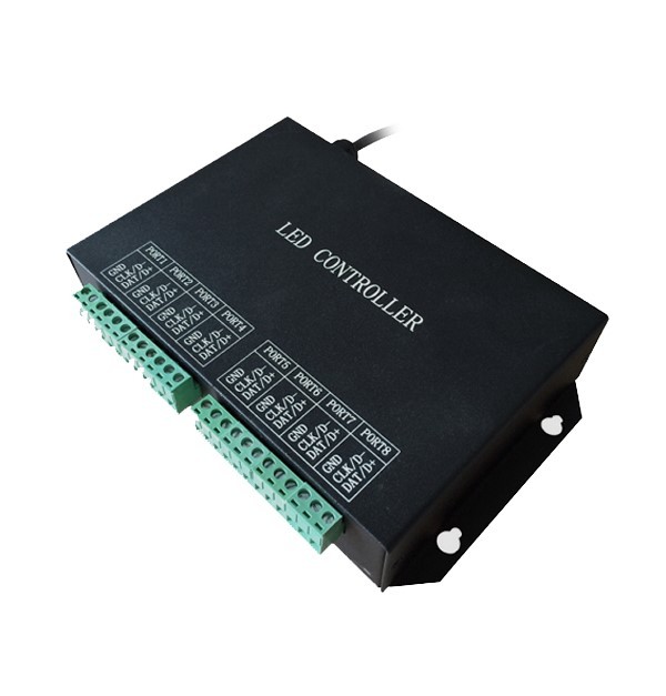 - Eight output ports to control up to 8192 pixel points. The maximum number of control points per port is 8192 divided by the actual number of ports used. The number of ports can be set to one, two, four or eight.